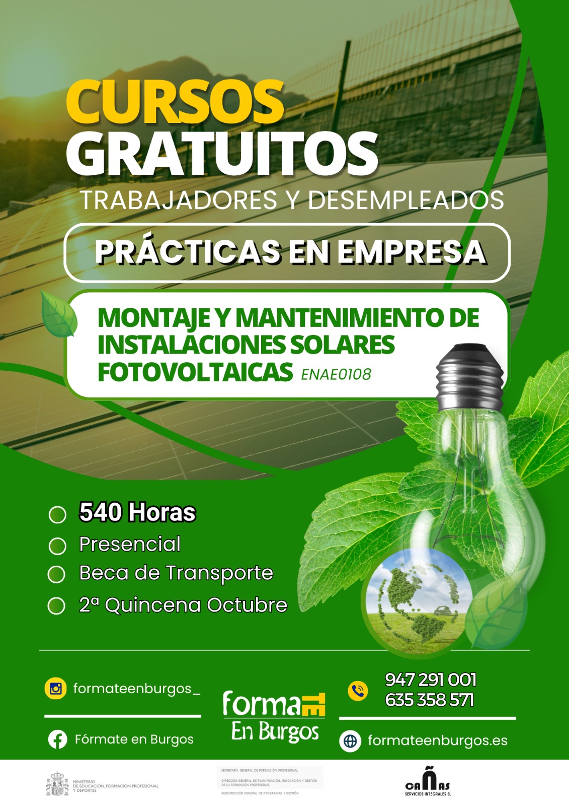 Curso de Montaje y mantenimiento de instalaciones fotovoltaicas en Villalbilla de Burgos (Burgos)